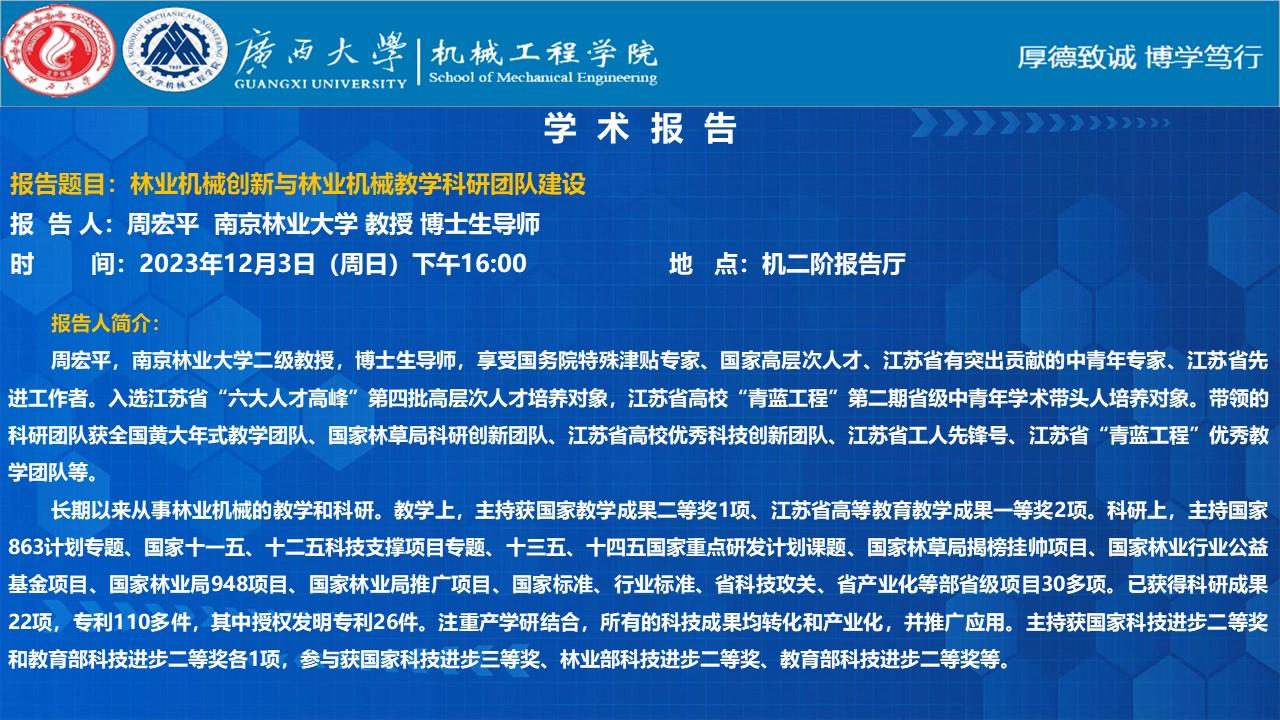 【英国上市365官网学术报告】林业机械创新与林业机械教学科研团队建设