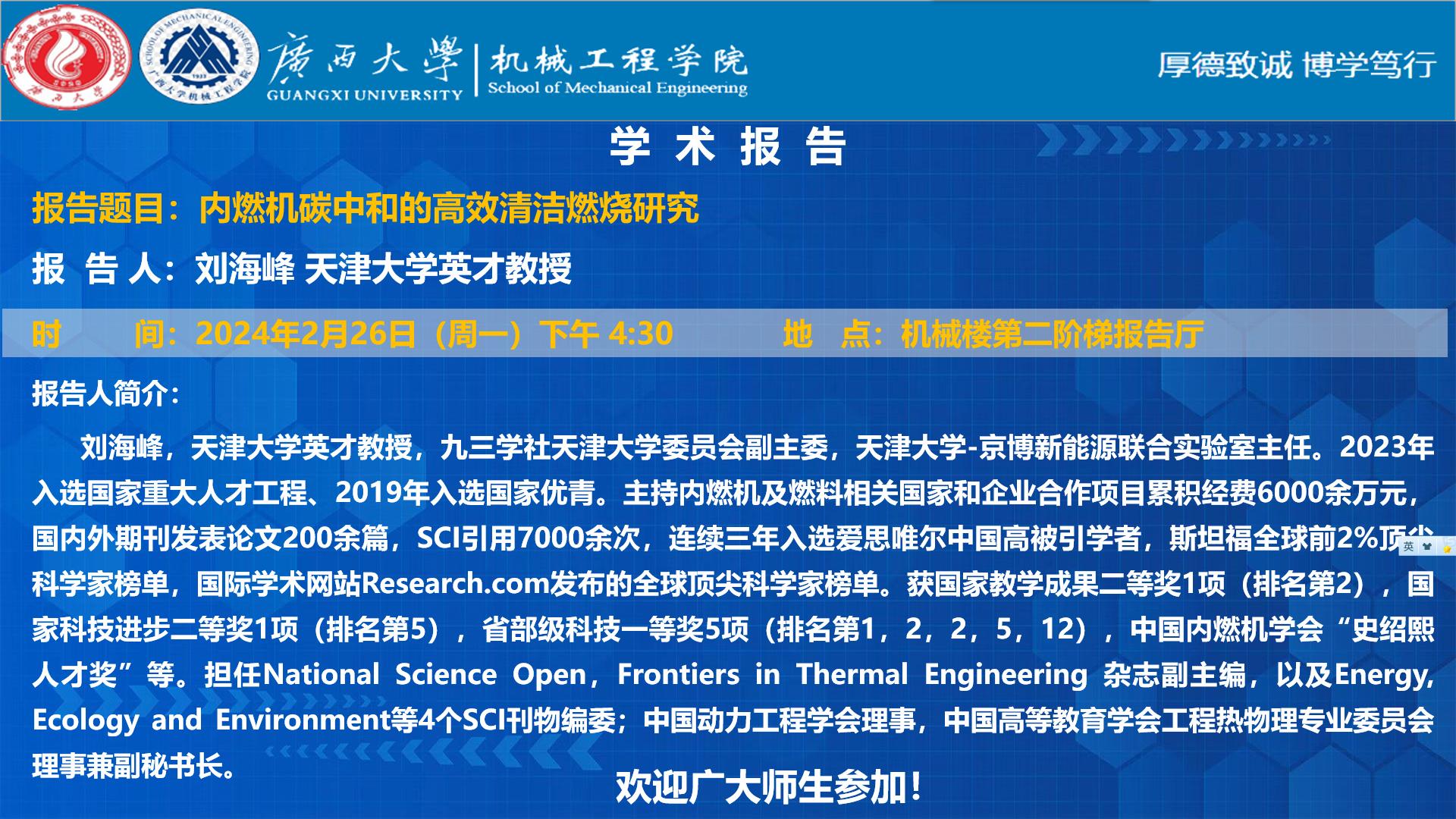 【英国上市365官网学术报告】内燃机碳中和的高效清洁燃烧研究