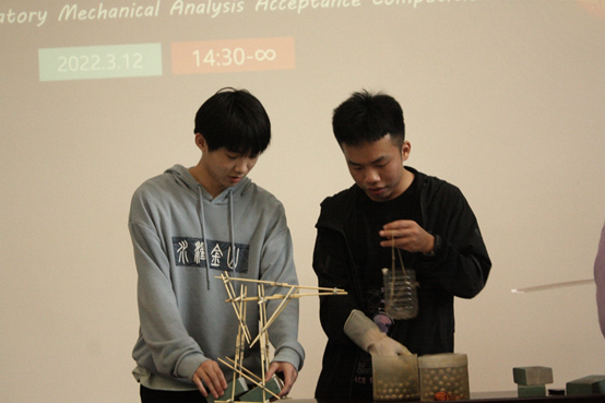 经过两个小时的激烈角逐,按照模型的最终承重大小评比出了前十名。此后,这十名选手为在场观众讲解了其创作经历,或是从生活当中得出灵感,或是实验出真理,亦或是寻求他人的帮助,巧妙利用团队的力量,总之整场比赛带来的挑战让同学们更好的成长了。