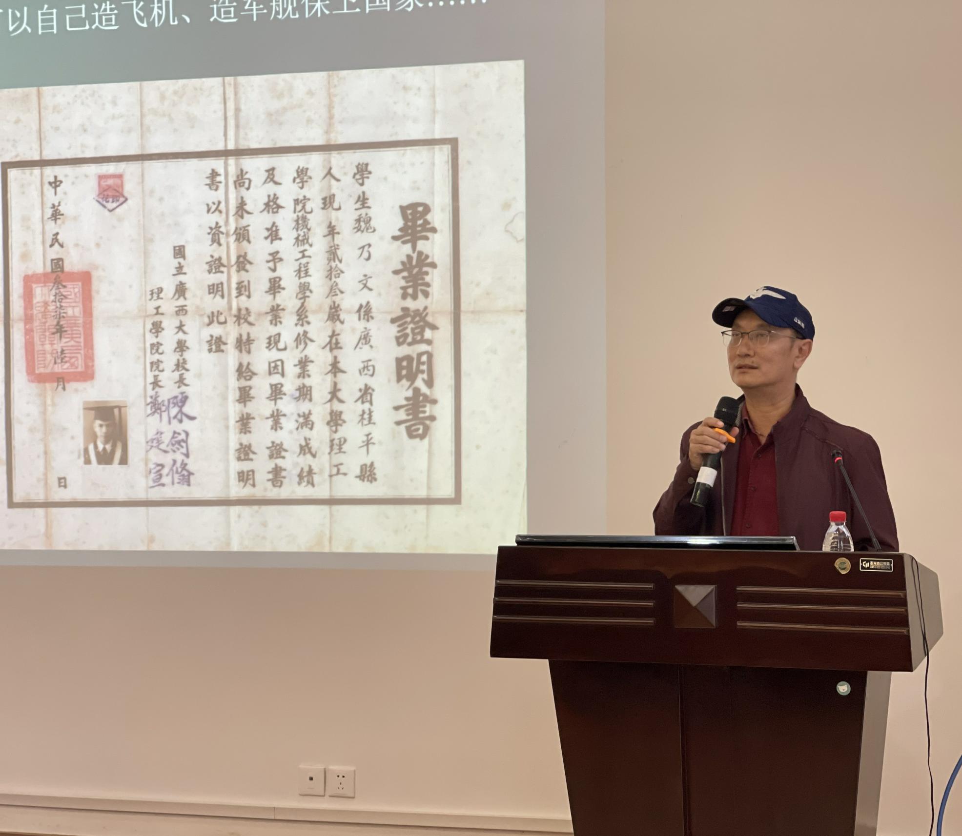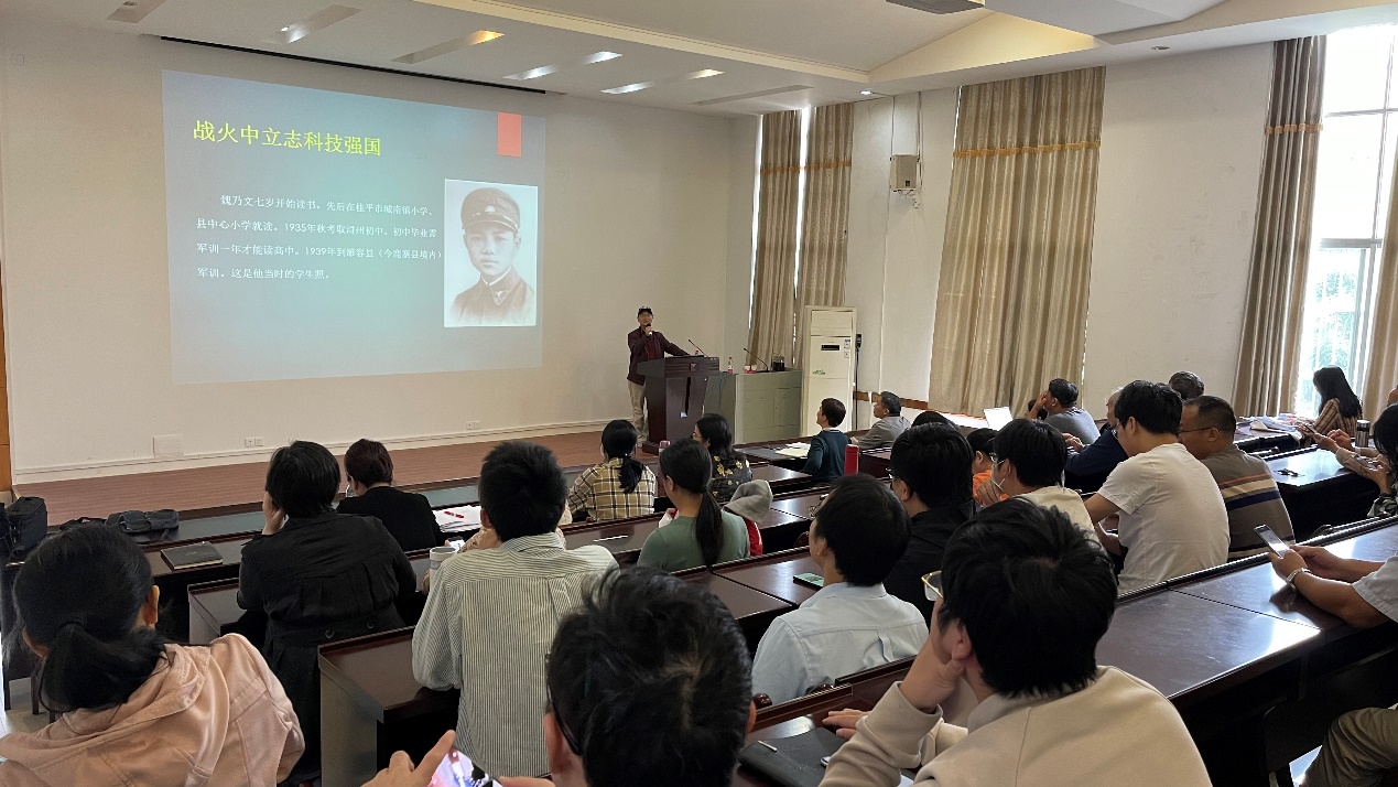 2022年11月15日下午,学院召开了全院教职工课程思政教育大会暨清廉故事会。此次特别邀请英国365官网杰出校友、国家“两弹一星”研究专家魏乃文老先生的侄子——魏风先生,为全院教师职工上了一堂以追忆魏乃文老先生生平事迹、学习魏老家国情怀为主题的思政教育课。