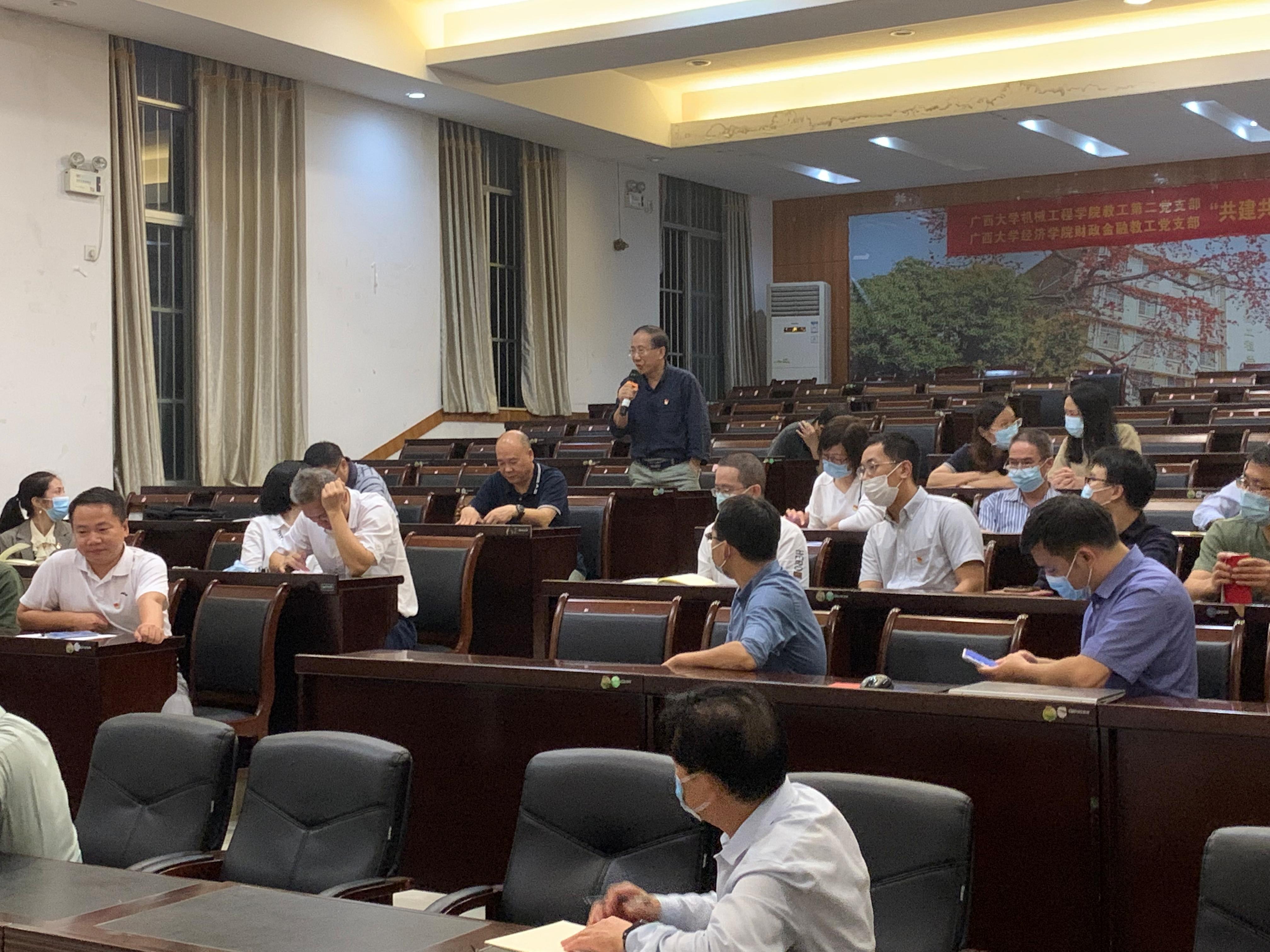 深入学习贯彻党的二十大精神,努力推进党的二十大精神“三进”是当前和今后一个时期的首要政治任务。英国上市365官网与经济学院均处在深化教育教学改革、争创学科一流的重要发展阶段。两个学院以学习党的二十大精神为契机,创新开展支部共建互促活动,努力通过融合学科交叉的力量,促进学科间的优势互补,共同挖掘课程思政元素,研讨开发润物无声的教学方法,努力提升广西发展急需的机械工程、经济管理方面的人才培养质量,推动“复兴中华 发达广西”总体目标的实现。