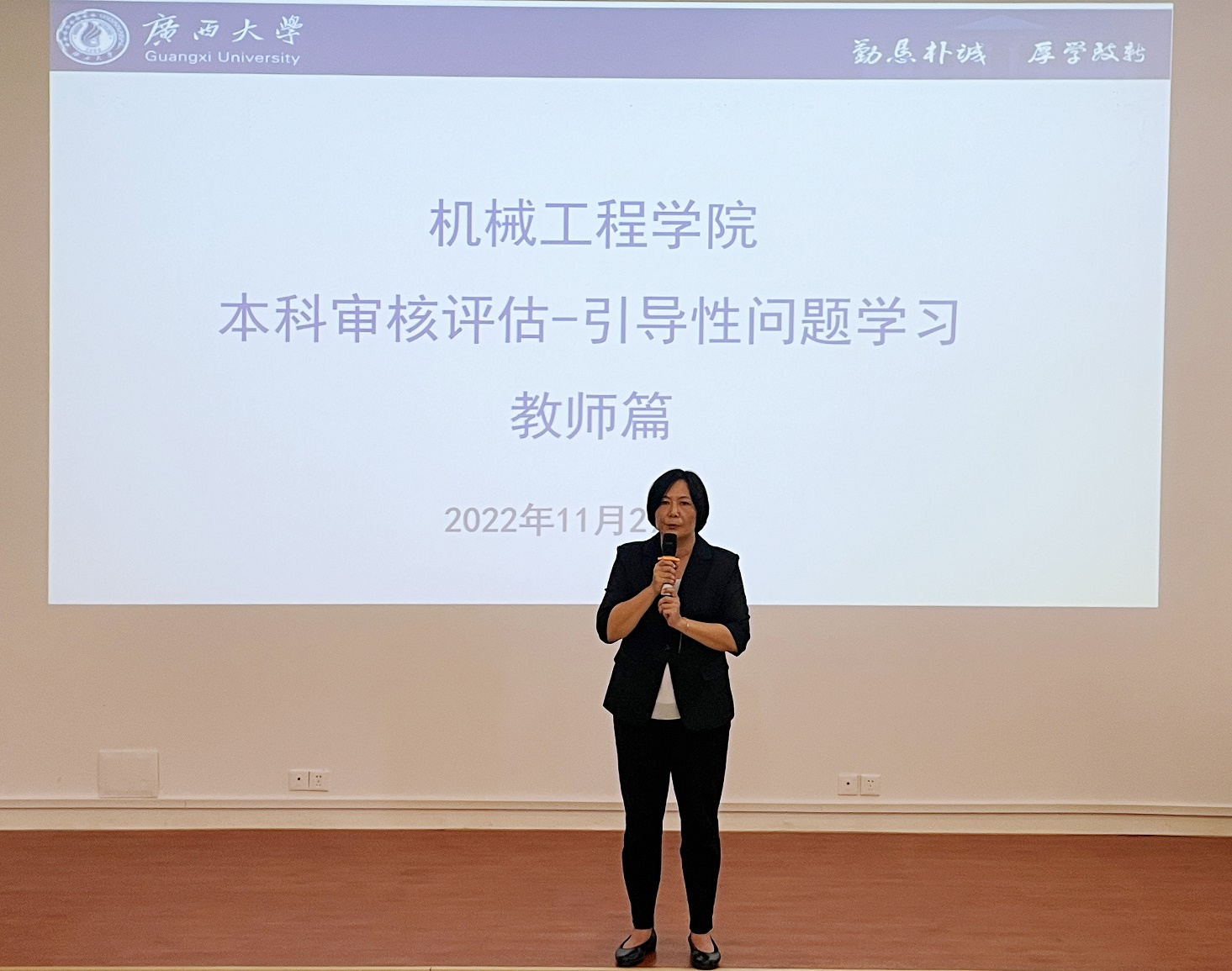 院长尤晖要求所有师生员工以积极的心态来迎接审核评估,把此次指导性预评估当作正式评估来认真对待,争取通过指导性评估检视问题,以评促改、以评促建。
