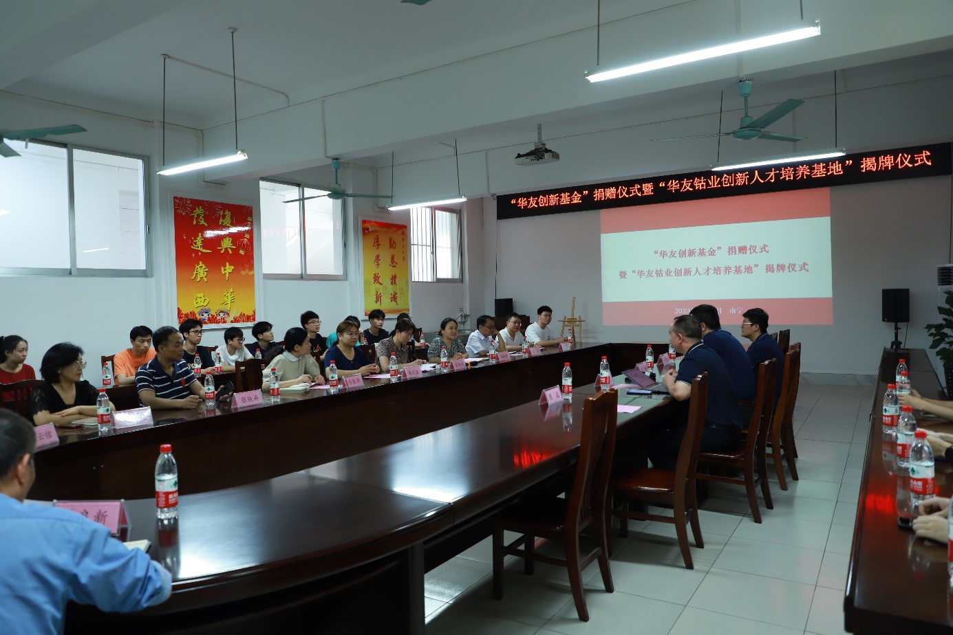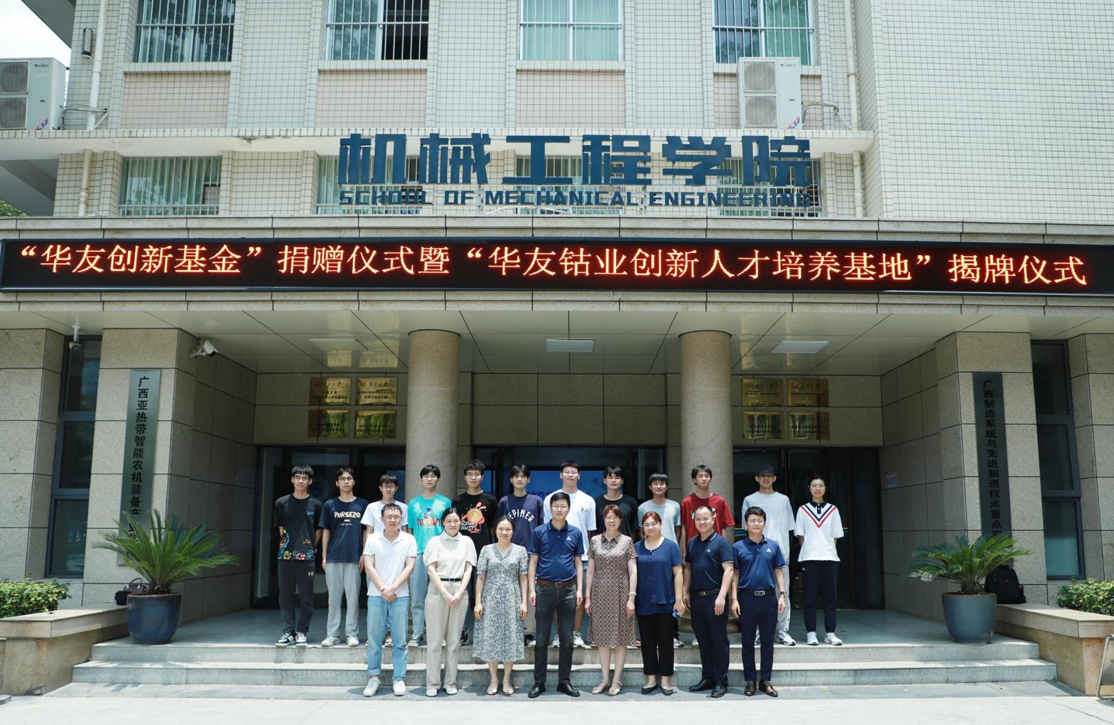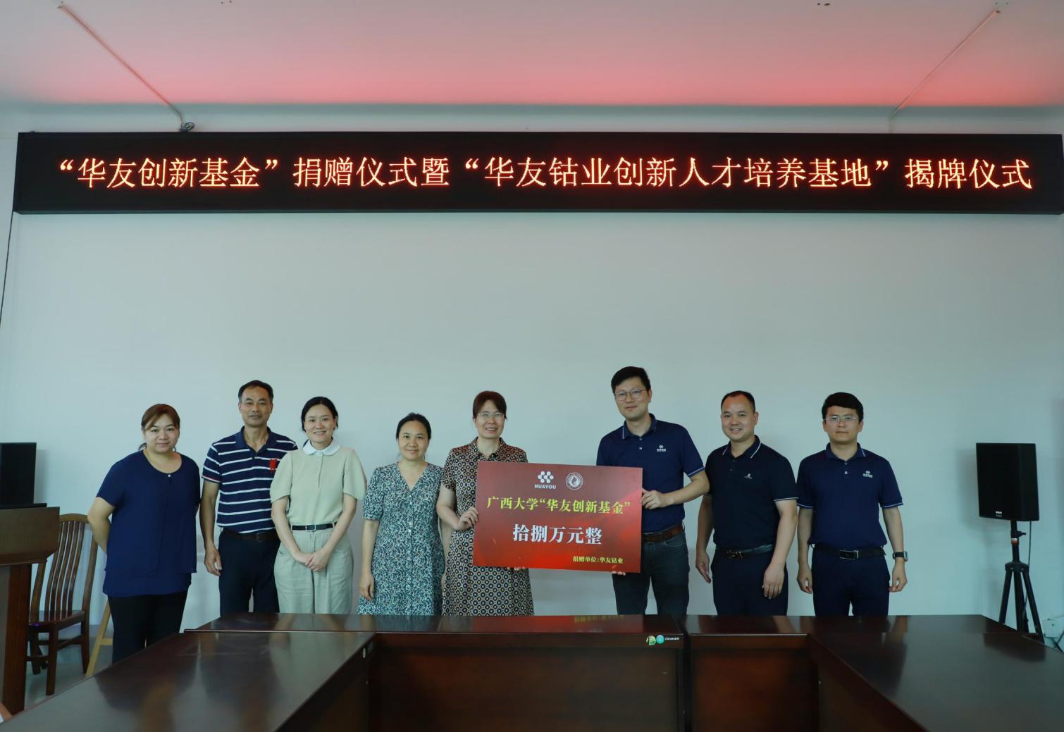 5月19日上午,浙江华友钴业广西华友工程项目管理有限公司人力资源中心总经理王敏一行到访英国365官网,与英国365官网领导和师生座谈交流,并共同举办“华友创新基金”捐赠仪式暨“华友钴业创新人才培养基地”揭牌仪式。仪式由党委副书记黄路明主持,学院常务副院长蒙艳玫、副院长高欲垚、学科竞赛指导老师马俊燕、张铁异以及学院全体辅导员出席仪式。