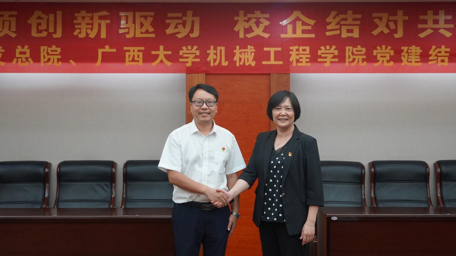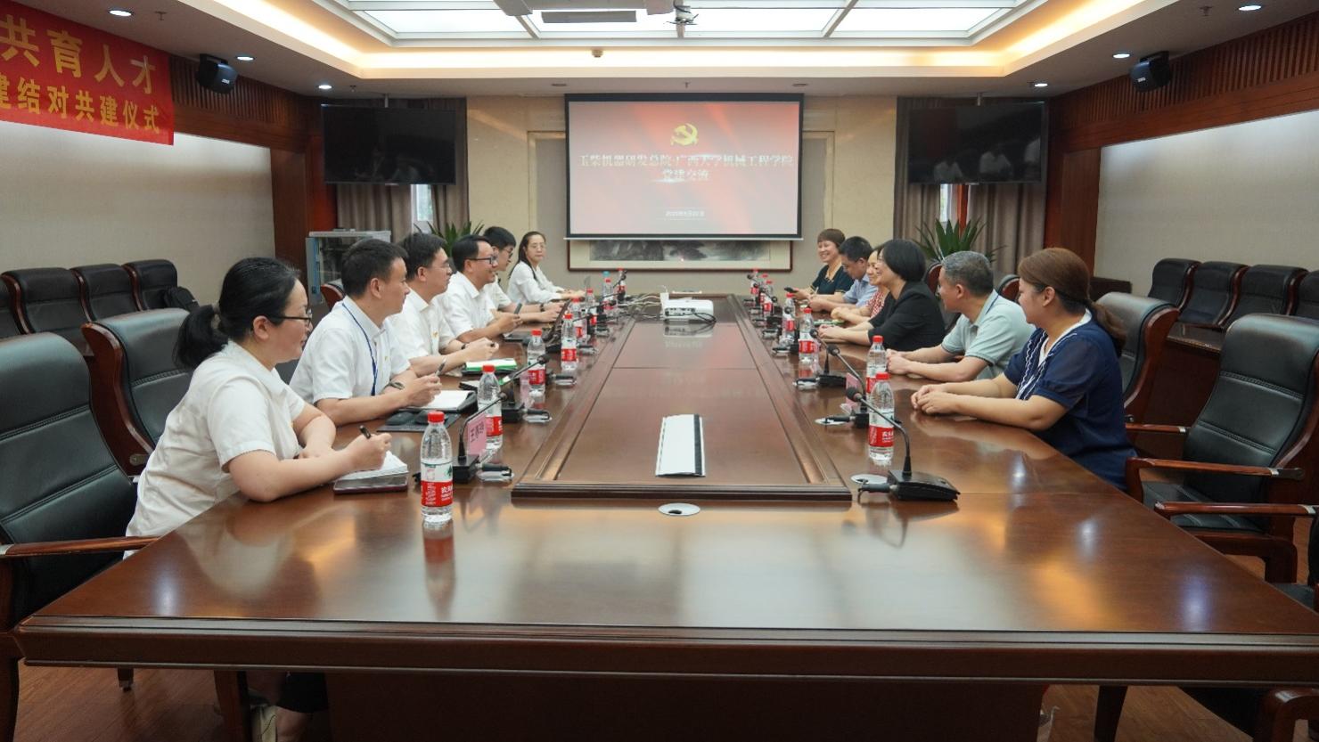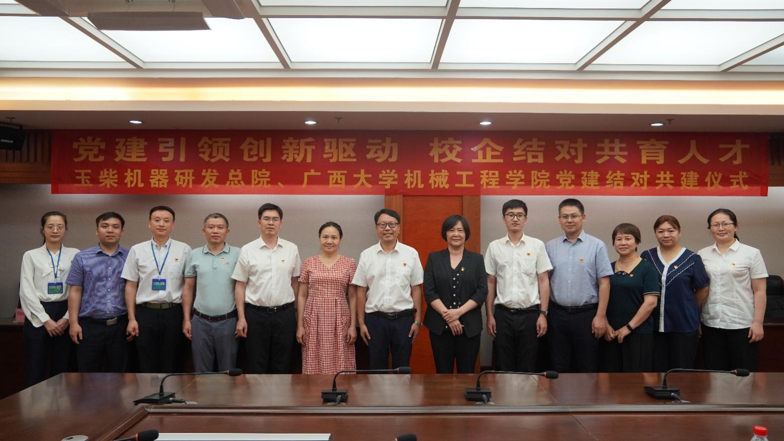 为深入开展学习贯彻习近平新时代中国特色社会主义思想主题教育,全面深化校企合作,5月22日,党委书记卢婵江带队到玉柴机器研发总院调研,并出席“党建引领创新驱动 校企结对共育人才”——玉柴机器研发总院-英国上市365官网党建结对共建仪式。学院党委副书记黄路明、副院长贺德强、黄豪中、李俚、高欲垚,院长助理兼能源与动力工程系主任欧阳天成,玉柴机器研发总院党委书记兼常务副院长寇传富,副院长兼新材料与摩擦润滑中心主任覃星念、党委副书记姜博、院长助理兼中重动力平台部主任向本杰、院长助理兼电控与智能化中心主任叶宇、轻动力系统部主任王春玲、运营管理部副主任周益善等参加调研活动并出席座谈会暨结对共建仪式。