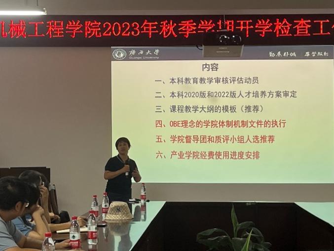李俚副院长首先通报了上午学校本科教学工作会议的精神,强调在9月24日到28日本科审核评估专家进校时间内,各专任教师在上课期间应严格遵守学校课堂教学的各项要求,注意课堂着装。同时各专业实验室应规划适合的参观路线,便于专家的巡查。