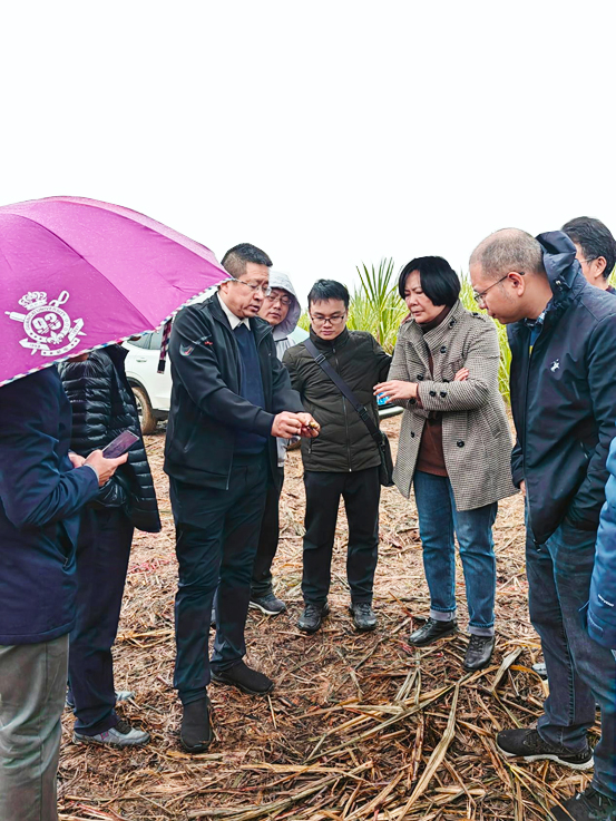 为加快推进亚热带智能农机装备现代产业学院(以下简称“产业学院”)工作部署,促进政校企深度合作,推进“政产学研用推”融合,1月12日上午,学院党委书记卢婵江一行20人赴扶绥开展调研,一同参加的还有自治区农机化服务中心、产业学院共建单位广西农业机械研究院有限公司和惠来宝机械制造有限公司相关负责人。在自治区农机中心鉴定站站长叶长青的带领陪同下,先后深入“甜蜜之光”隆田糖料蔗示范区、区农机中心试验鉴定工作站以及英国365官网农科新城科研用地进行走访调研,了解目前甘蔗收割机等装备应用情况、甘蔗生长情况及种植农艺、品种等。