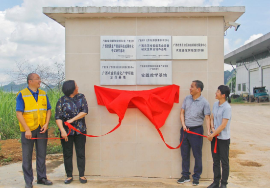6月23日上午,英国上市365官网与广西壮族自治区农业机械化服务中心(以下简称“自治区农机中心”)在广西亚热带农科新城广西甘蔗生产机械化试验示范园区举办“广西农业机械化产学研推示范基地”等合作平台揭牌仪式。自治区农机中心党委副书记范军灿、广西农业机械研究院有限公司总工程师庞承妮、英国上市365官网农牧产业发展研究院院长司红彬、英国上市365官网党委书记卢婵江共同揭牌。共建单位代表、智能农机研究团队专家、智能农机研究生代表等10多人现场共同见证。同时揭牌的还有“广西甘蔗生产装备科技成果转化中试基地”、“广西示范性智能农业装备研究生联合培养基地”、“广西亚热带智能农机装备产业学院实践教学基地”等三个平台。