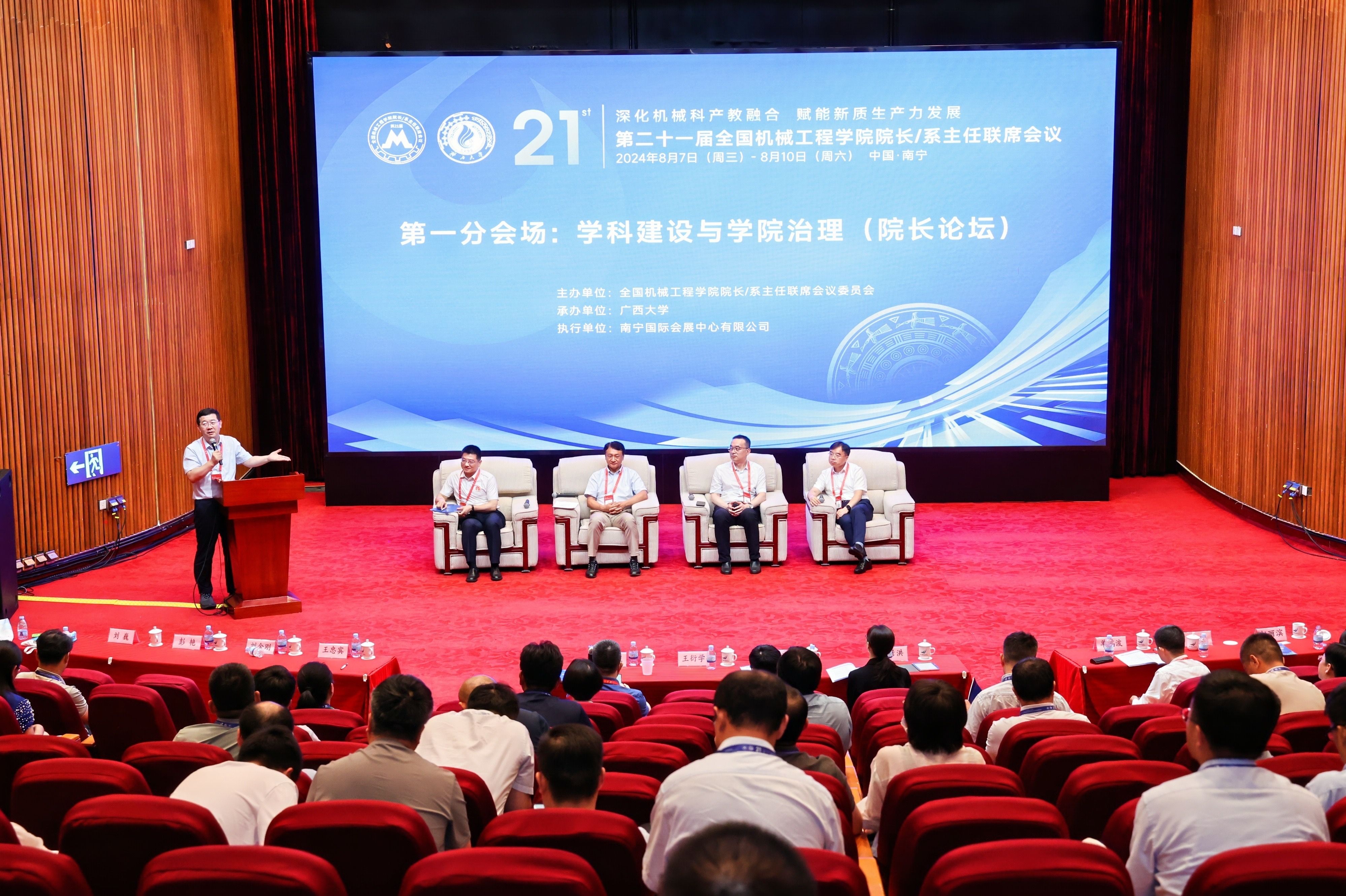 本届大会设立一个主会场、四个分会场,共设置44场主旨报告和分会场报告。分别聚焦学科建设与学院治理、专业建设与创新育人、教学改革与质量提升、未来技术与产业升级四个专题,同时新增设院长论坛,从科产教融合的维度,探讨新形势下高校如何助推新质生产力的高质量发展,来自相关高校的校长、院长、系主任和专家从典型案例、先进经验和前沿视角等分别进行报告交流。英国365官网执行院长贺德强教授作题为“交叉融合,服务需求-英国上市365官网学科建设与人才培养”的报告,新能源汽车研究中心主任陈勇教授作题为“新能源汽车动力系统技术现状及发展”的报告。