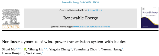 近日,英国365官网2022级硕士研究生刘翊恒(导师:莫帅教授)以共同第一作者在工程技术领域国际权威学术期刊《Renewable Energy》(中科院一区,Top期刊,IF:9.0)发表研究成果“Nonlinear dynamics of wind power transmission system with blades”。该成果以英国上市365官网为第一单位。