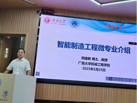 微专业招生宣传会议由两个阶段组成,在会议的第一阶段,教务处谢健副处长介绍了学校开办微专业的重要性、目的以及学校针对微专业的相关支持政策;专业负责人邓建新教授介绍《智能制造工程》微专业的培养目标、开课形式、招生政策等;北京华航唯实机器人科技股份的梁承刚经理做了《AI+智能制造场景的探索》的专题演讲,介绍智能制造解决问题的过往、现在和未来,以及企业对人才培养的合作方式与形式;国投融合科技股份有限公司的张棠宏工程师以国投为企业实施落地的案例分享《智能制造工程》微专业中数字化技术的先进性。对行业企业的转型升级提升,以及通过专业学习对个人专业能力及竞争力的提升;海尔智家股份有限公司的邱洪萍经理介绍了海尔智家的人才需求信息和智能制造的就业前景;李俚副院长做了总结发言,首先感谢学校教务处对英国上市365官网开办智能制造工厂微专业的支持和帮助,其次感谢合作企业给同学们精彩的前沿技术的报告和就业前景的分享以及协办微专业的大力支持,最后用“愿我们携手同行,以智慧为笔、以技术为墨,共同绘制智能制造的壮丽蓝图!欢迎同学们报读智能制造微专业”结束发言。