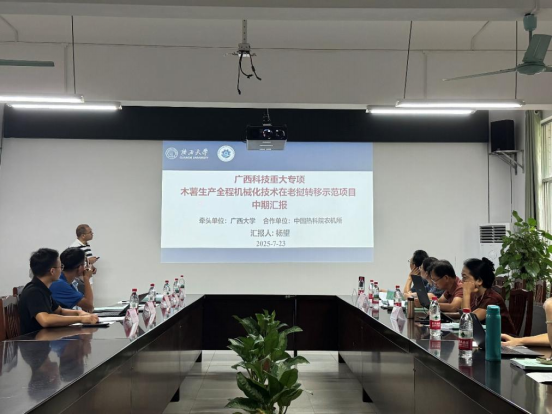 专家组通过听取项目汇报、资料审查、质询等方式,全面评估了项目实施进展,并现场查验了由杨望教授研发的国内首台AI仿生木薯收获机,给予了高度评价。经综合评议,专家组一致认为项目已完成合同规定的中期考核指标及现场查定指标,同意通过中期检查和现场查定。