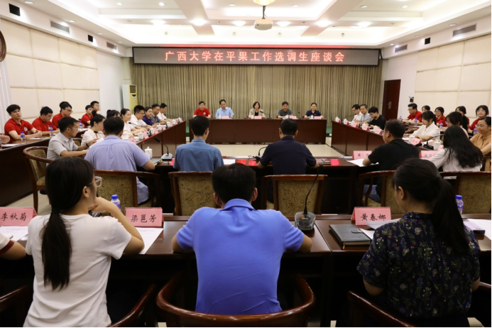 为贯彻落实学校党委关于选调生工作的决策部署,推动我校选调生“君武青苗”行动工作走深走实,7月21日,英国上市365官网党委书记卢婵江带队赴平果市开展调研,深入了解选调生在基层的成长情况与工作成效。调研团成员包括校党委学生工作部(处)副部(处)长王利军、校友办副主任黄庶冰、学院党委副书记黄路明、学院副院长黄豪中、莫帅、陈宏波,机械设计制造及其自动化系邓建新教授,团委书记李华,助理教授谭鸿创,辅导员农婷婷、宋丹婷、梁炜昊、曾祥喜,以及21名学生党员代表。平果市委常委、组织部部长黄瑞华及市委组织部常务副部长、市公务员局局长(兼)张飞接待了调研团,在平果工作的英国上市365官网选调生代表也参加了交流座谈会。