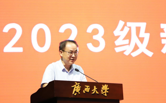 尤晖院长在开学典礼中致辞。他把学院和新生比作“老树”和“新芽”,代表学院热烈欢迎“新芽”们的到来。他激励同学们要确立目标,做好吃苦、面对困难的思想准备,做拒绝躺平,严于律己的时代新人,在学习生活中,要积极“闯关”,也要总结“过关”,要善于培养发现问题和解决问题的能力,努力在学校里找到未来的方向。