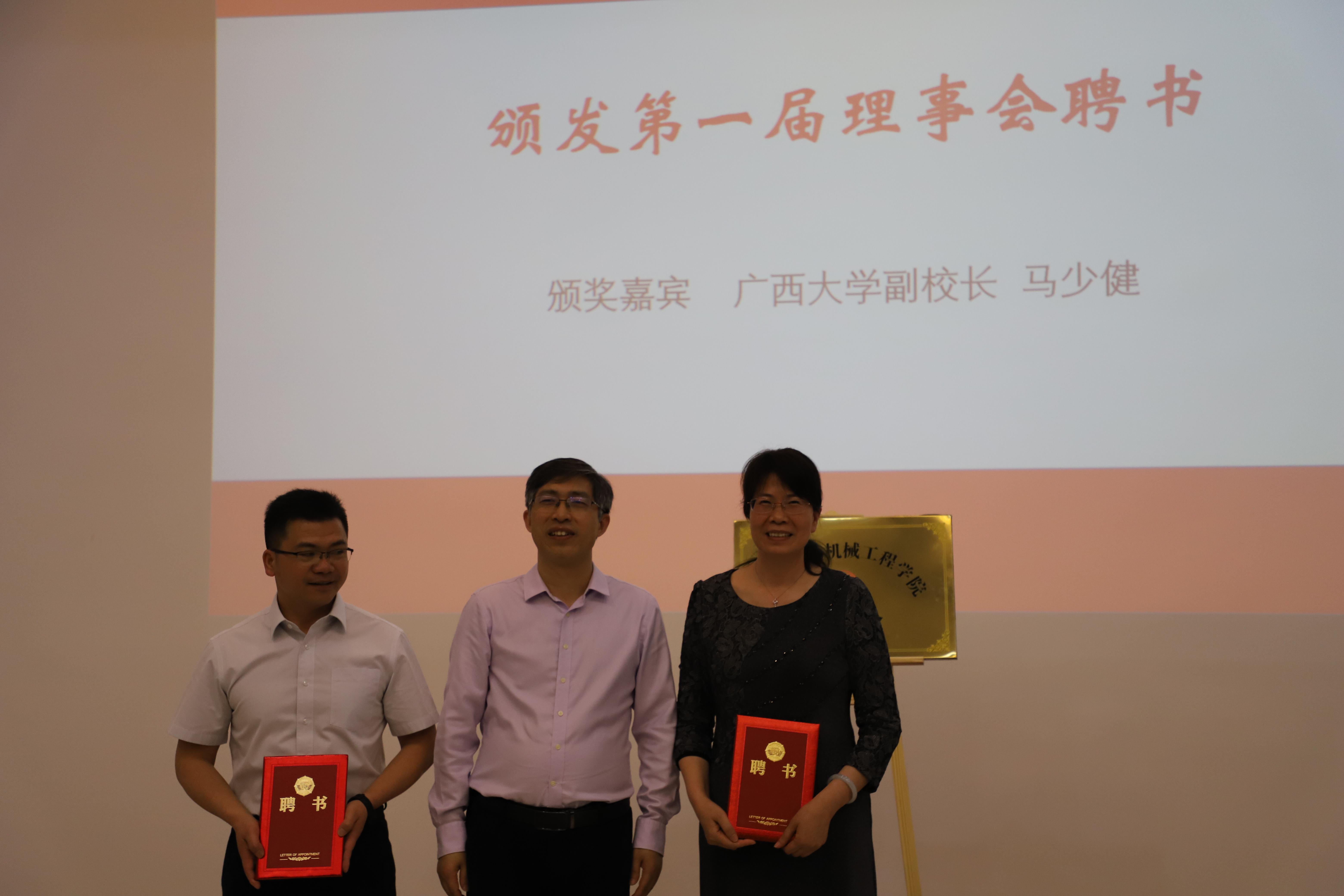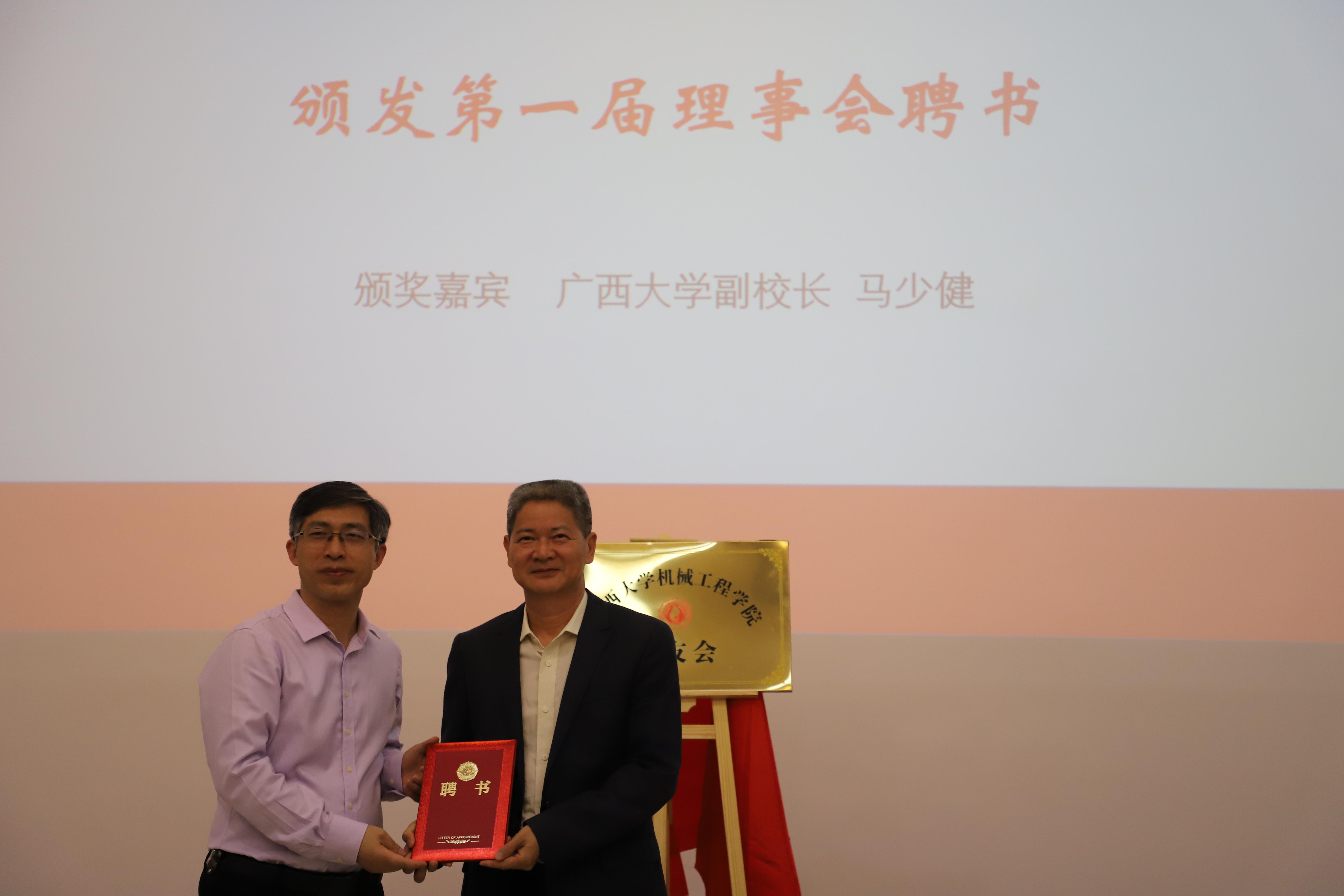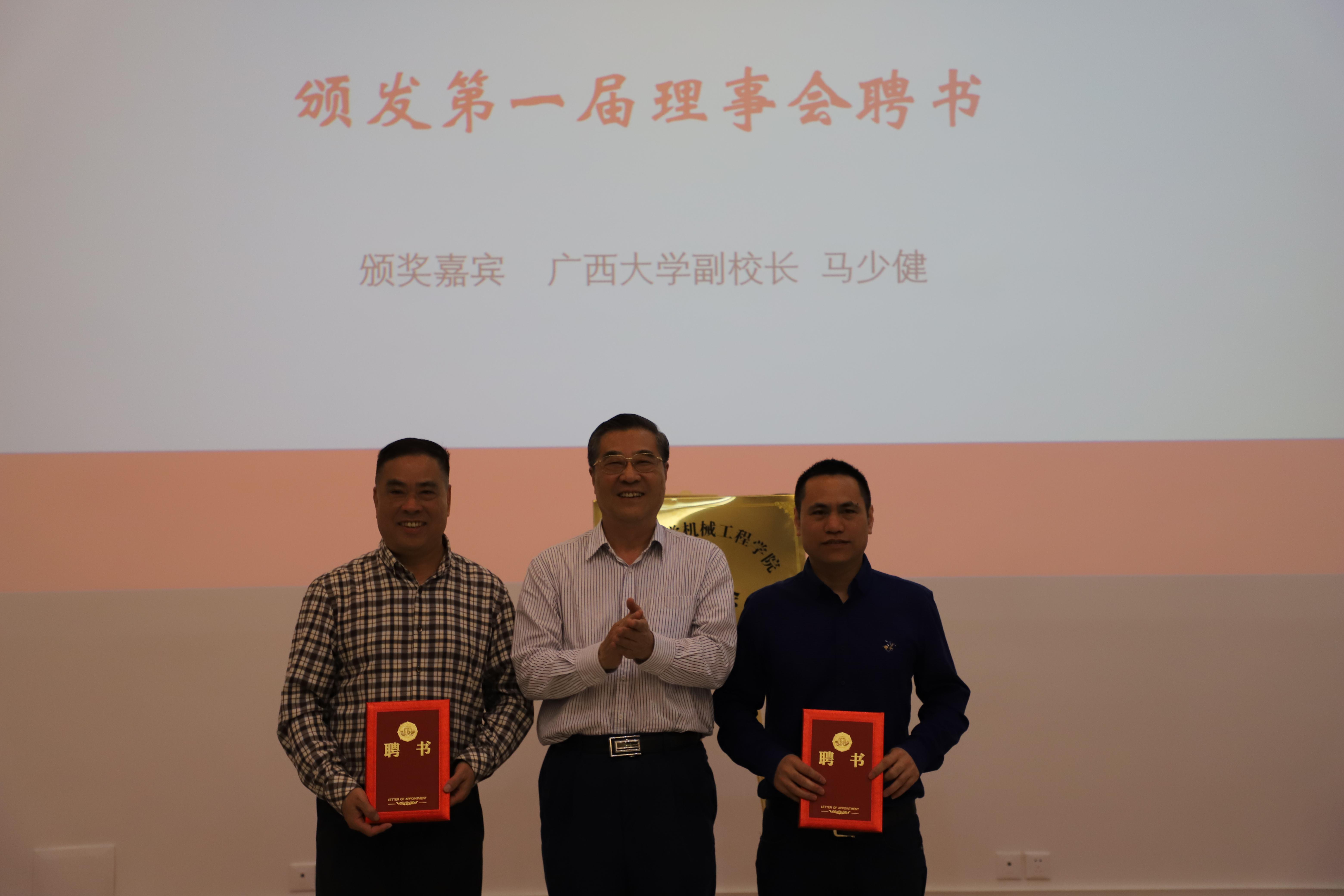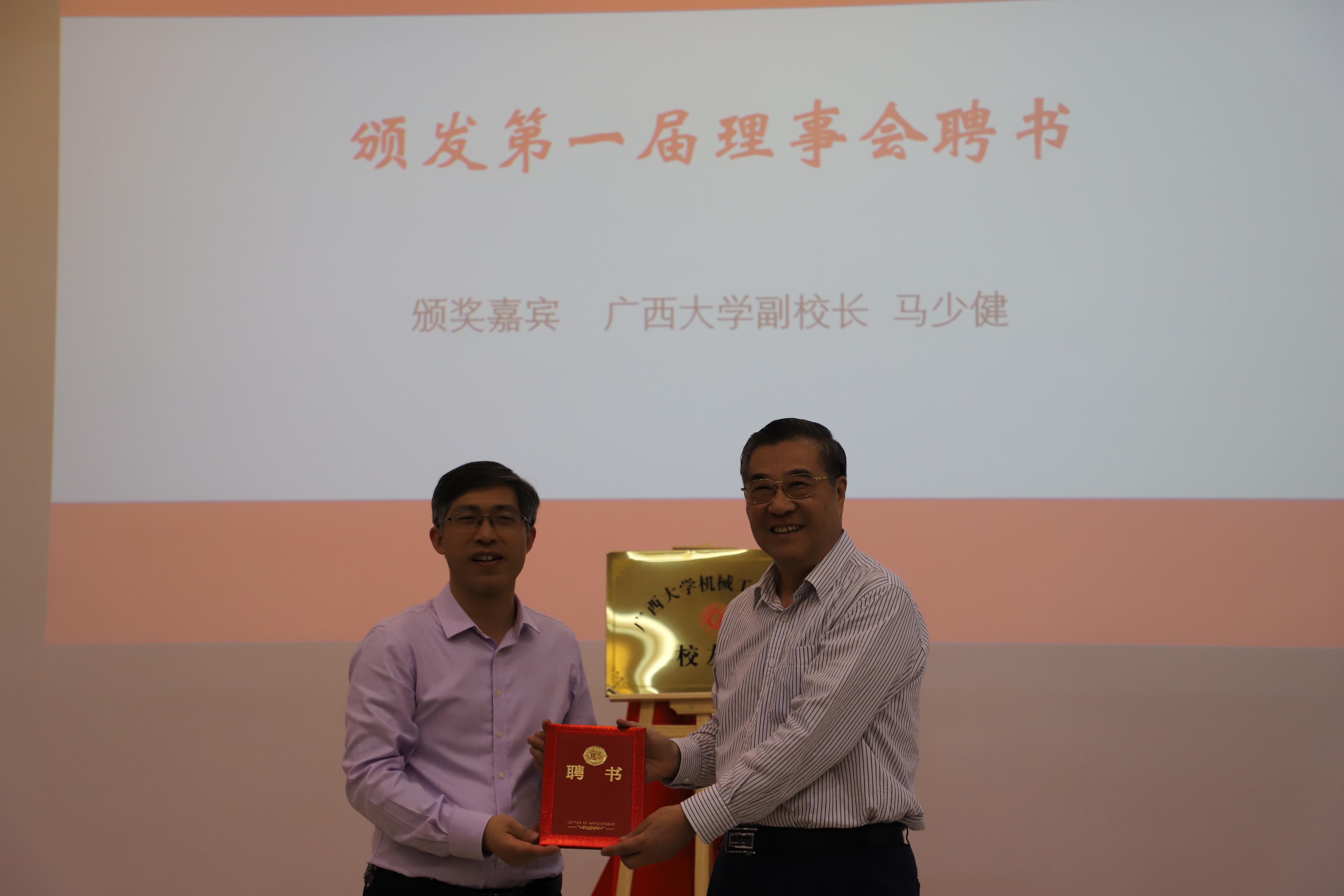 校友会成立仪式暨揭牌仪式在第二阶梯教室举行。自治区政协原副主席林国强、自治区政府参事黄健、英国上市365官网原副校长毛汉领等120多位校友出席成立大会,英国上市365官网副校长马少健代表学校出席并讲话。成立大会由学院党委书记卢婵江主持。
