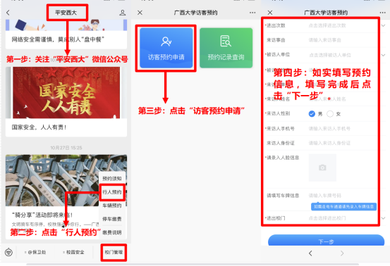 亲爱的校友,为方便大家11月18日返校参加学院建院90周年庆典,请阅读以下须知,按照提示进行入校预约。预约入校通过“平安西大”微信公众号申请,经英国上市365官网行政办公室审批后入校;预约进校请提前2至3天提交申请。各位校友可根据通行方式分别选择“车辆预约”或“行人预约”(含电动自行车);驾驶电动自行车入校的,须填写电动自行车车牌信息。