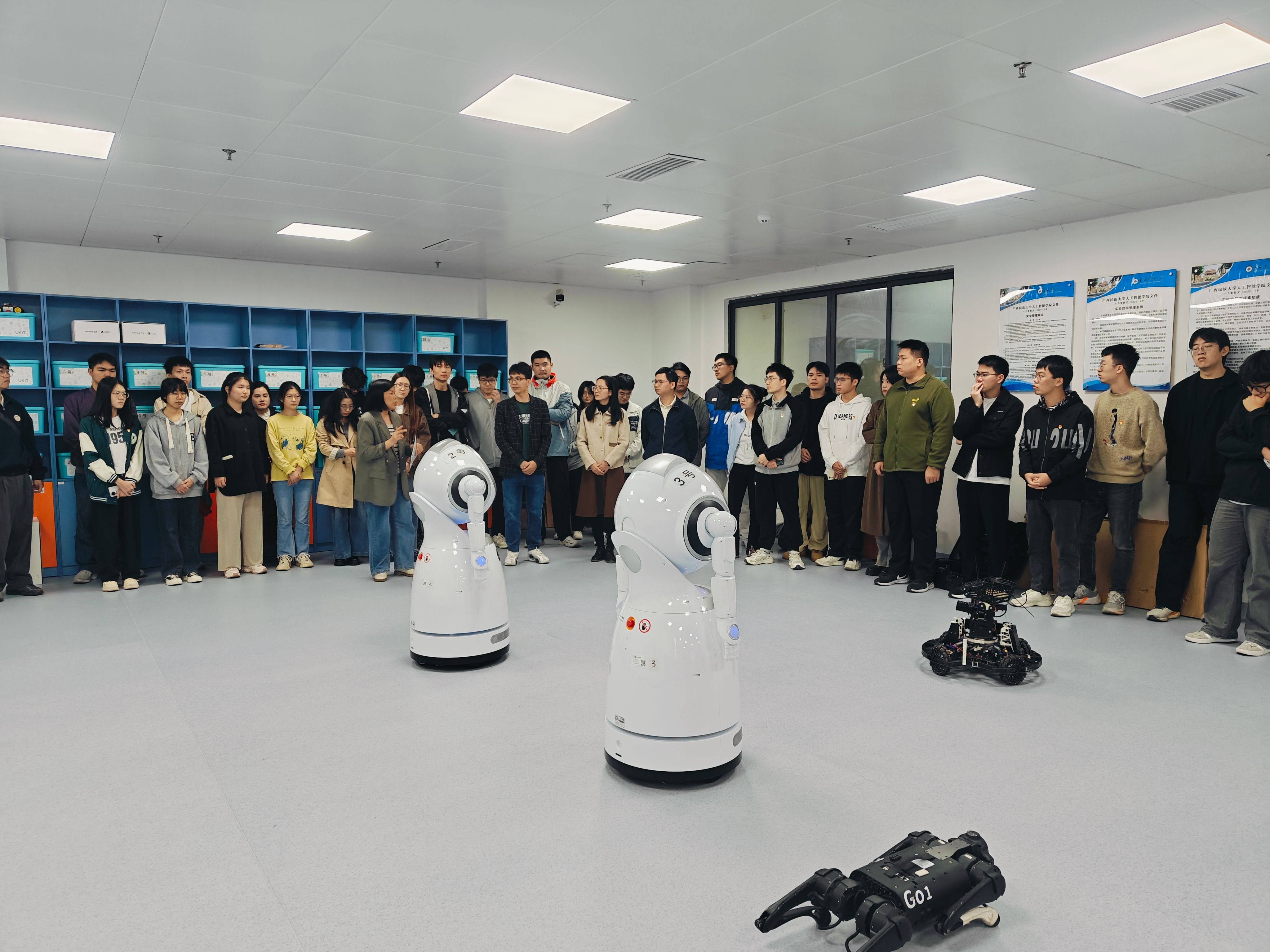 在参观活动中,人工智能学院韦老师讲解了实验室概况及机器人应用前景,并且通过互动展示,让与会党员亲身体验智能制造和人工智能技术的魅力。通过实践操作和现场演示,加深了大家对人工智能技术的理解,还产生了思维火花的碰撞。