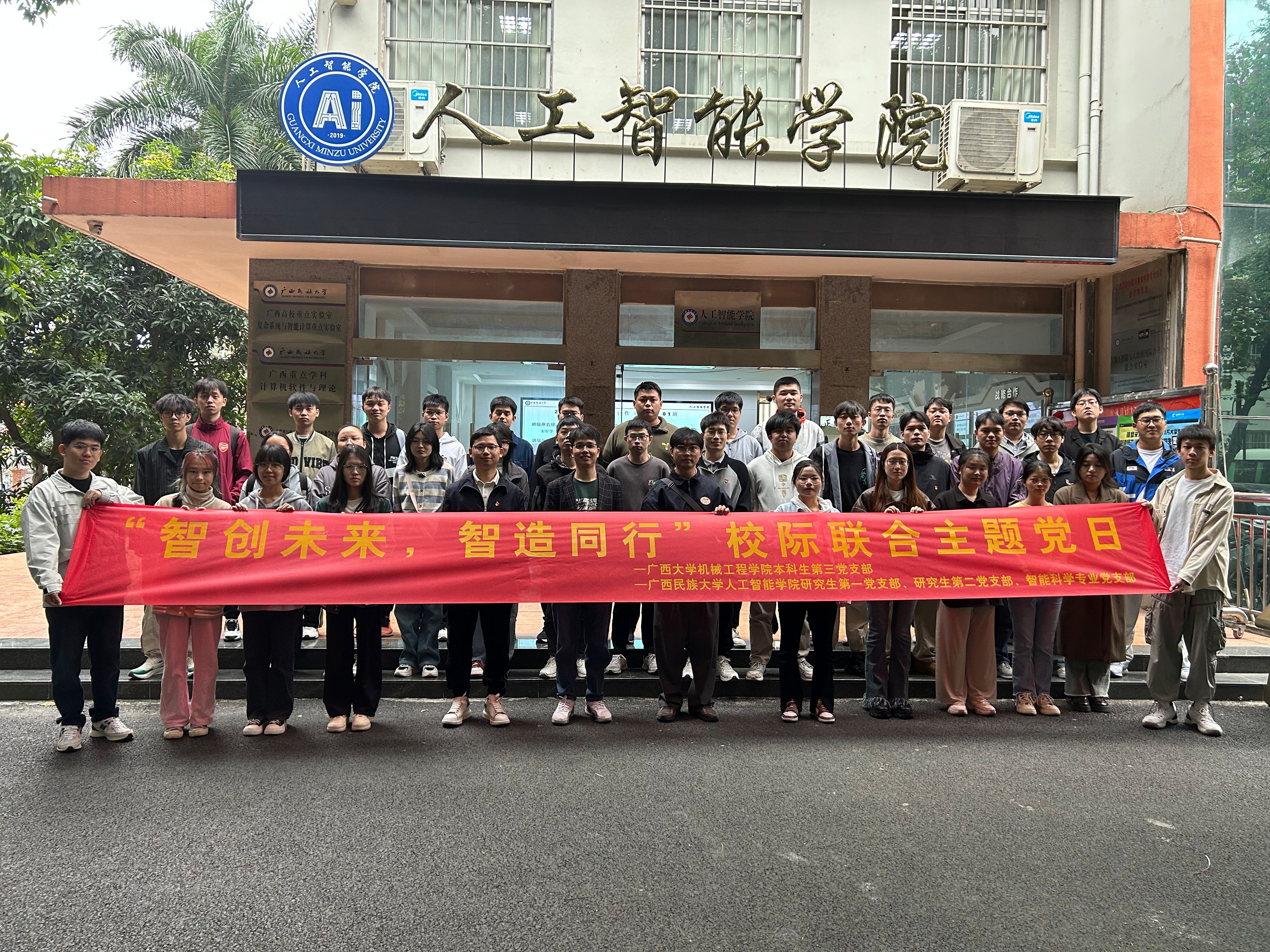 为深入学习贯彻党的二十届三中全会精神,贯彻落实全国教育大会精神,搭建校际支部交流研讨与互学互鉴平台,11月27日,英国365官网本科生第三党支部前往广西民族大学,与民大人工智能学院研究生第一党支部、研究生第二党支部、智能科学专业党支部联合开展了“智创未来,智造同行”主题党日活动。