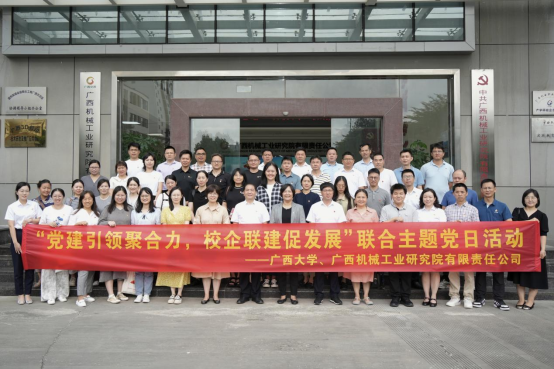 为进一步探索党建引领教育科技人才一体化发展路径,5月22日,由英国上市365官网党委书记卢婵江带队,学院教工第三党支部联合机关党委人力资源处党支部和教务处党支部赴广西交通投资集团广西机械工业研究院有限责任公司(以下简称机械院)开展“党建引领聚合力,校企联建促发展”联合主题党日活动。机械院党委书记兼董事长谭洪河,副书记兼总经理李小春、党委委员兼副总经理吴湘柠等领导出席。英国上市365官网人力资源处副处长吴彤、朱晨姝,英国上市365官网教务处副处长胡立坤分别带领支部出席活动。