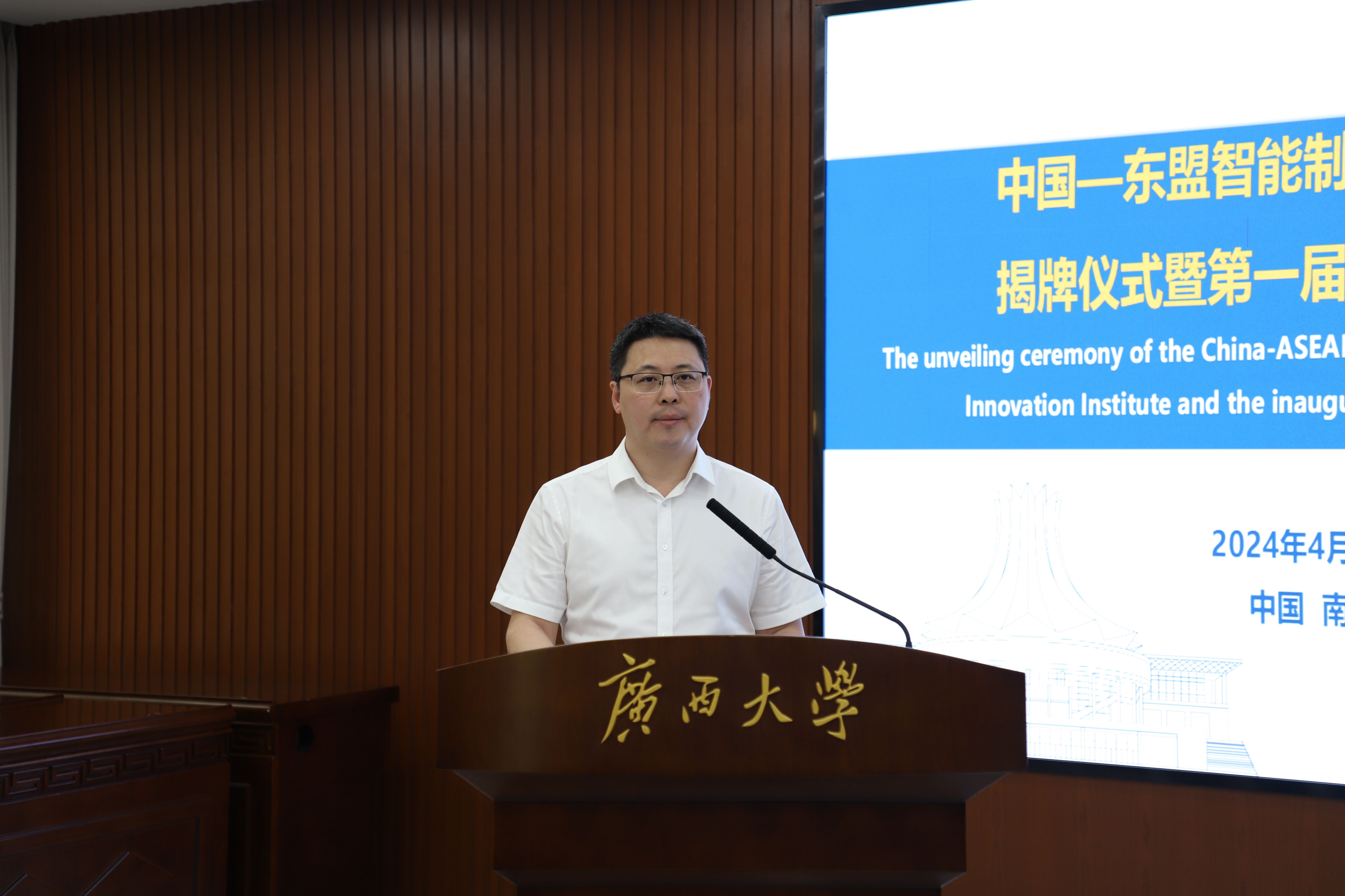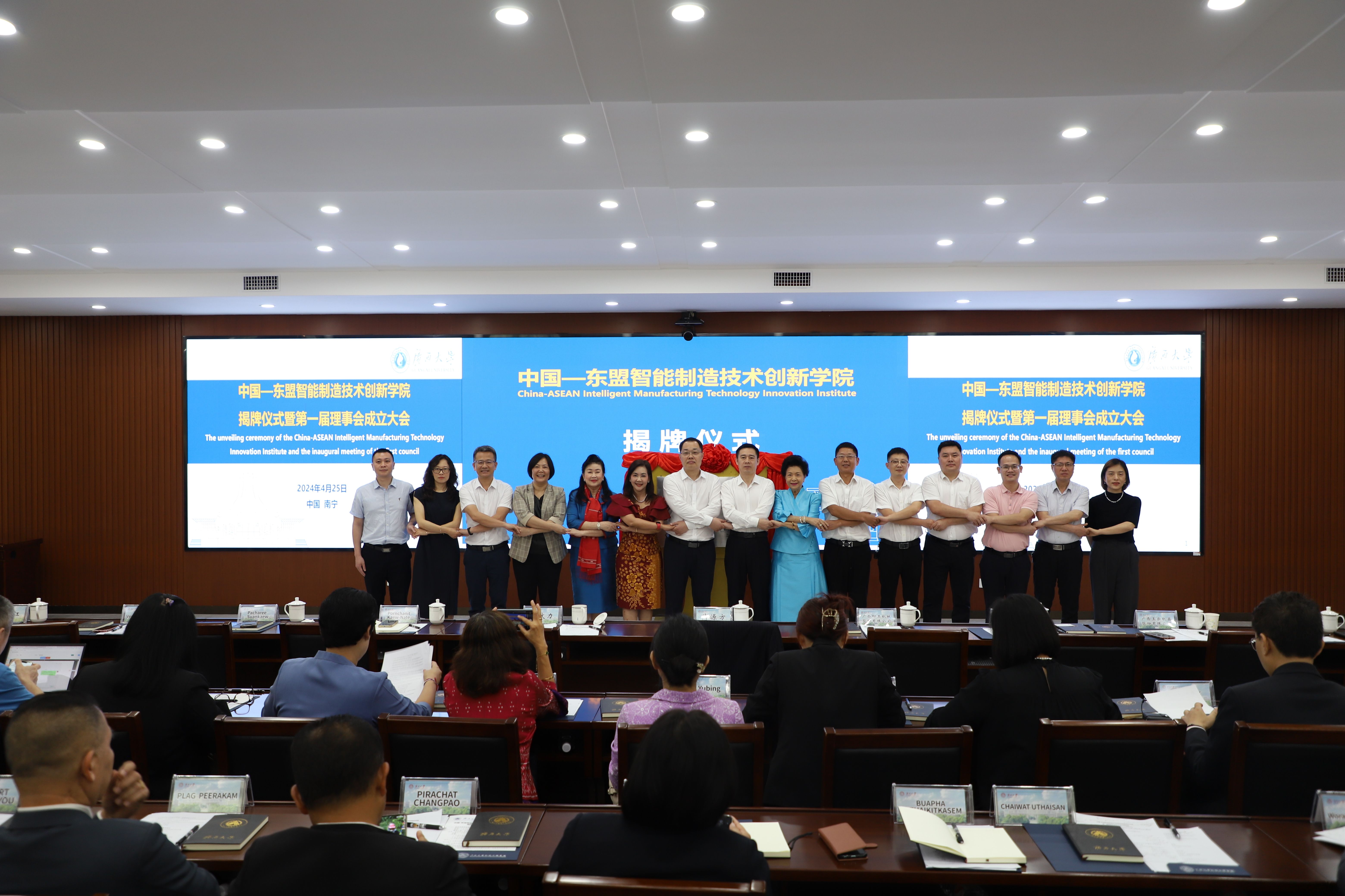 4月25日上午,由英国365官网牵头的中国-东盟智能制造技术创新学院在我校揭牌成立。校党委常委、副书记马献力、自治区教育厅高教处处长兼学位管理与研究生教育处处长(自治区学位办主任)傅源方共同为技术创新学院揭牌。