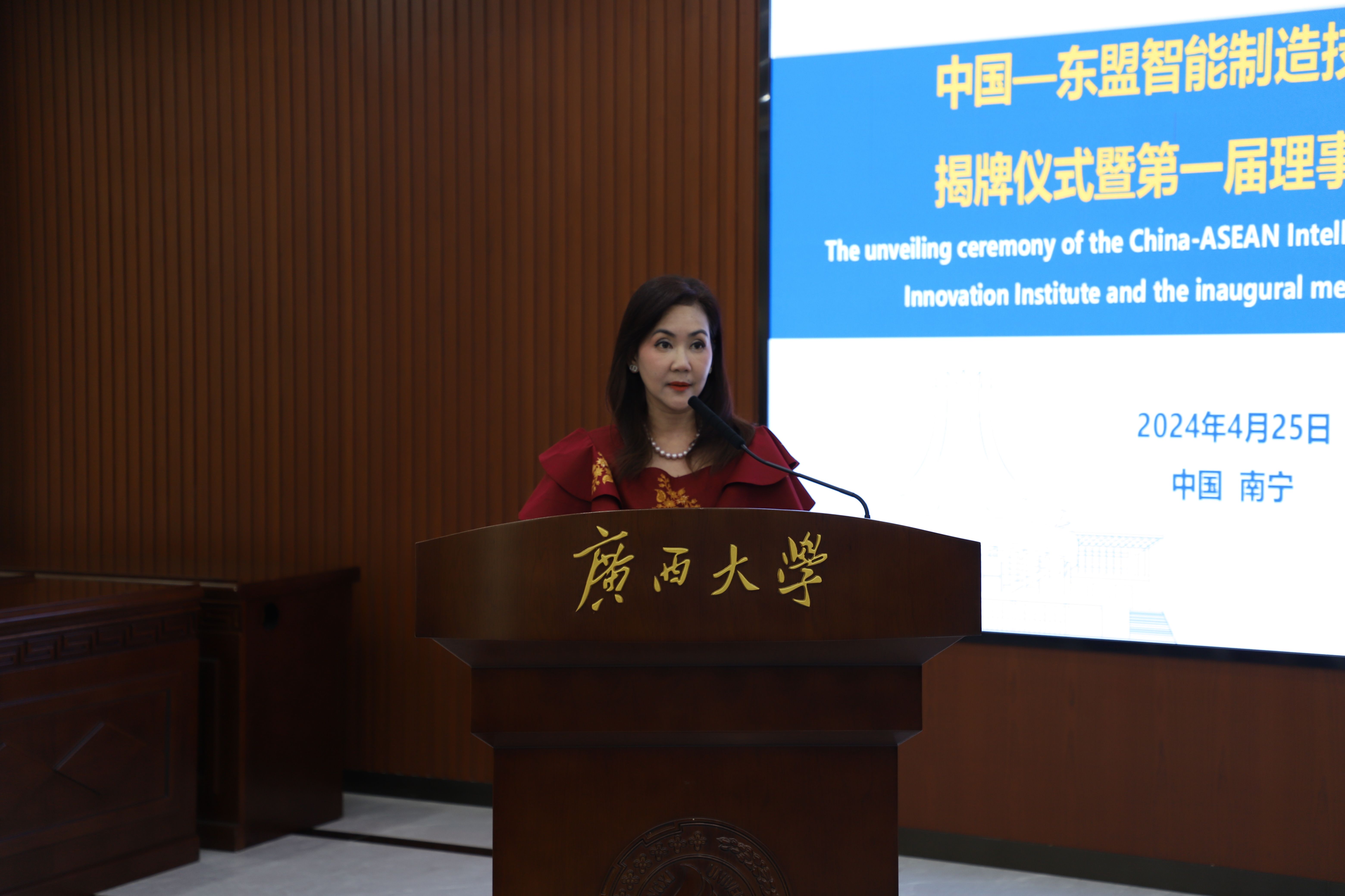 揭牌仪式上,马献力代表学校对中国-东盟智能制造技术创新学院的成立表示祝贺。他强调,学校历来重视与东盟国家高校的合作与交流,聚焦“亚热带、东盟、海洋、边疆民族”办学特色,与东盟国家深入开展多项中外联合办学及科研合作,学科国际影响力不断提升。今年,广西政府聚焦打造中国职业教育创新高地、服务中国-东盟共同发展,批准建设首批10所与区域特色优势产业深度融合的高起点、高标准、高水平的技术创新学院,重点培养支撑产业技术创新的高层次技术人才,解决产业发展的关键技术问题,推动重大科技成果产业化。由我校英国上市365官网牵头建设的“中国-东盟智能制造技术创新学院”就是其中之一。中国-东盟智能制造技术创新学院的成立和建设,是我校积极落实“深耕东盟,着眼世界”的国际化发展战略的一项重要举措,也将为自治区建成立足广西、面向东盟、服务共建“一带一路”的职业教育对外开放合作创新高地贡献重要力量。