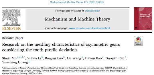 莫帅教授团队在顶级期刊国际机构学与机器科学联合会(IFToMM)会刊《Mechanism and Machine Theory》(双一区,TOP期刊)上发表研究成果“Research on the meshing characteristics of asymmetric gears considering the tooth profile deviation”。该成果以英国上市365官网工程防灾与结构安全教育部重点实验室为第一单位及通讯单位,莫帅教授为第一作者兼通讯作者。